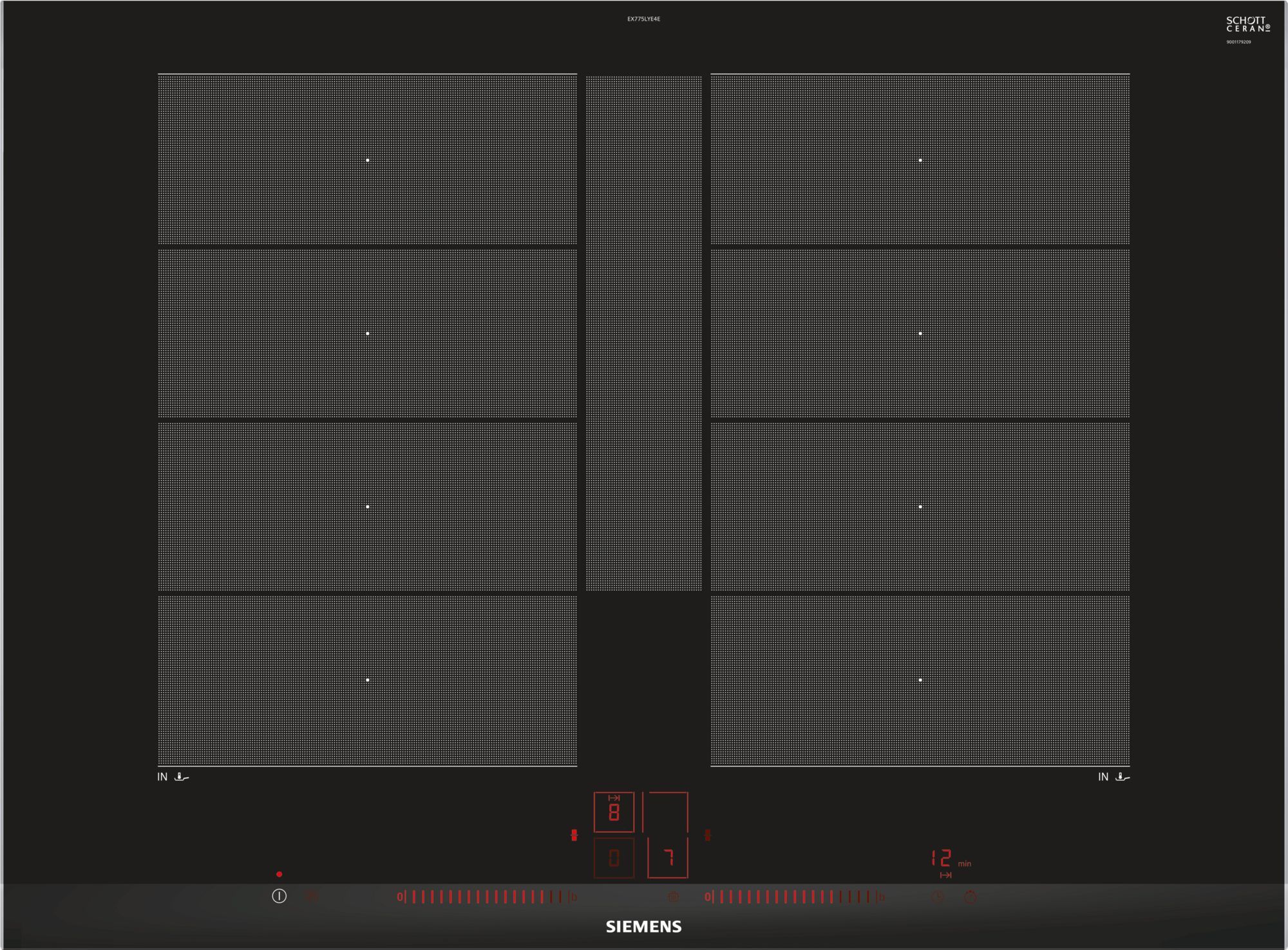 Placa de inducción Siemens iQ700 EX775LYE4E con un tamaño intermedio de 70 cm, ideal para cocinas de espacio medio. Pertenece a la línea iQ700, ofreciendo funciones avanzadas y un diseño moderno.