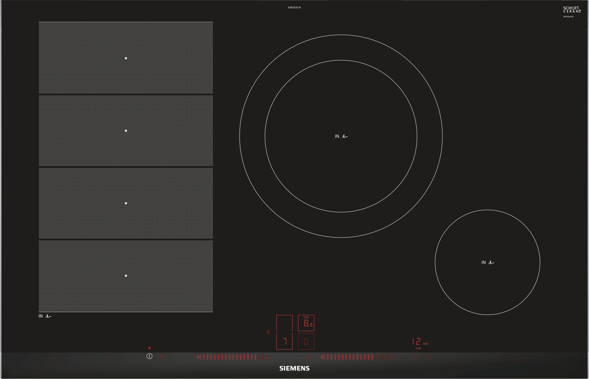 Placa de inducción Siemens de 80 cm, con diseño elegante y tecnología avanzada.