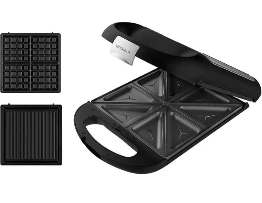 Sandwichera Cecotec Rock’nToast Family 3in1, ideal para sándwiches, gofres y parrilla. Compacta, fácil de usar y limpiar.