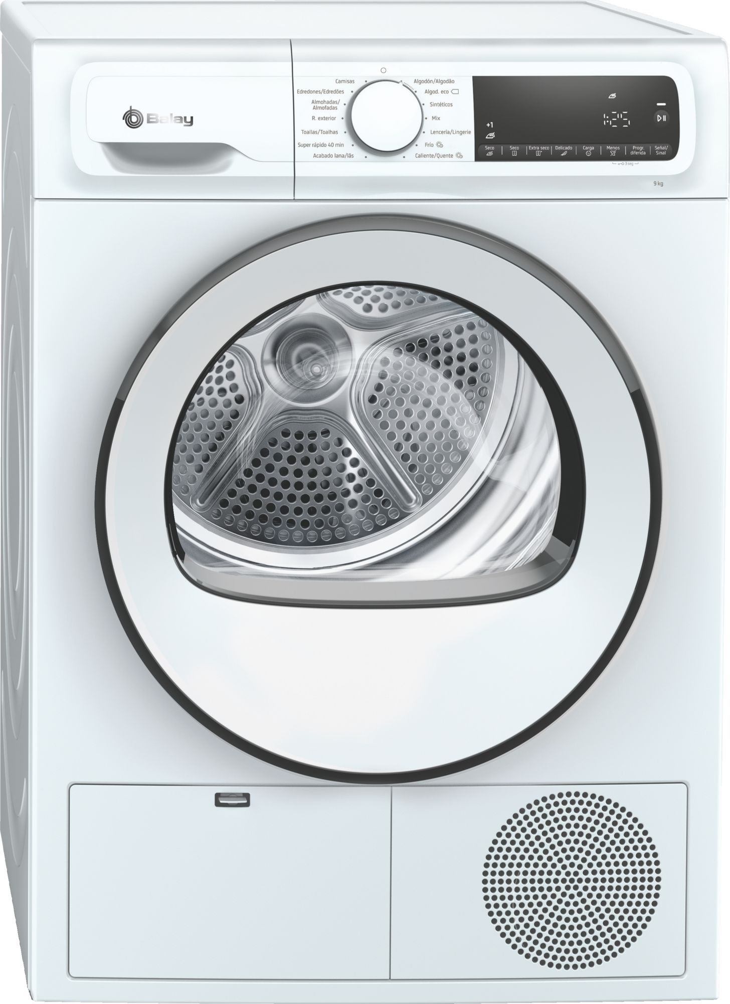 La secadora Balay 3SB090B con bomba de calor de 9 kg en color blanco proporciona un secado rápido, eficiente y respetuoso con el medio ambiente. Con su tecnología avanzada, reduce el consumo energético y cuida tus prendas mediante programas especiales adaptados a diferentes tejidos. Ideal para familias grandes o cargas pesadas.