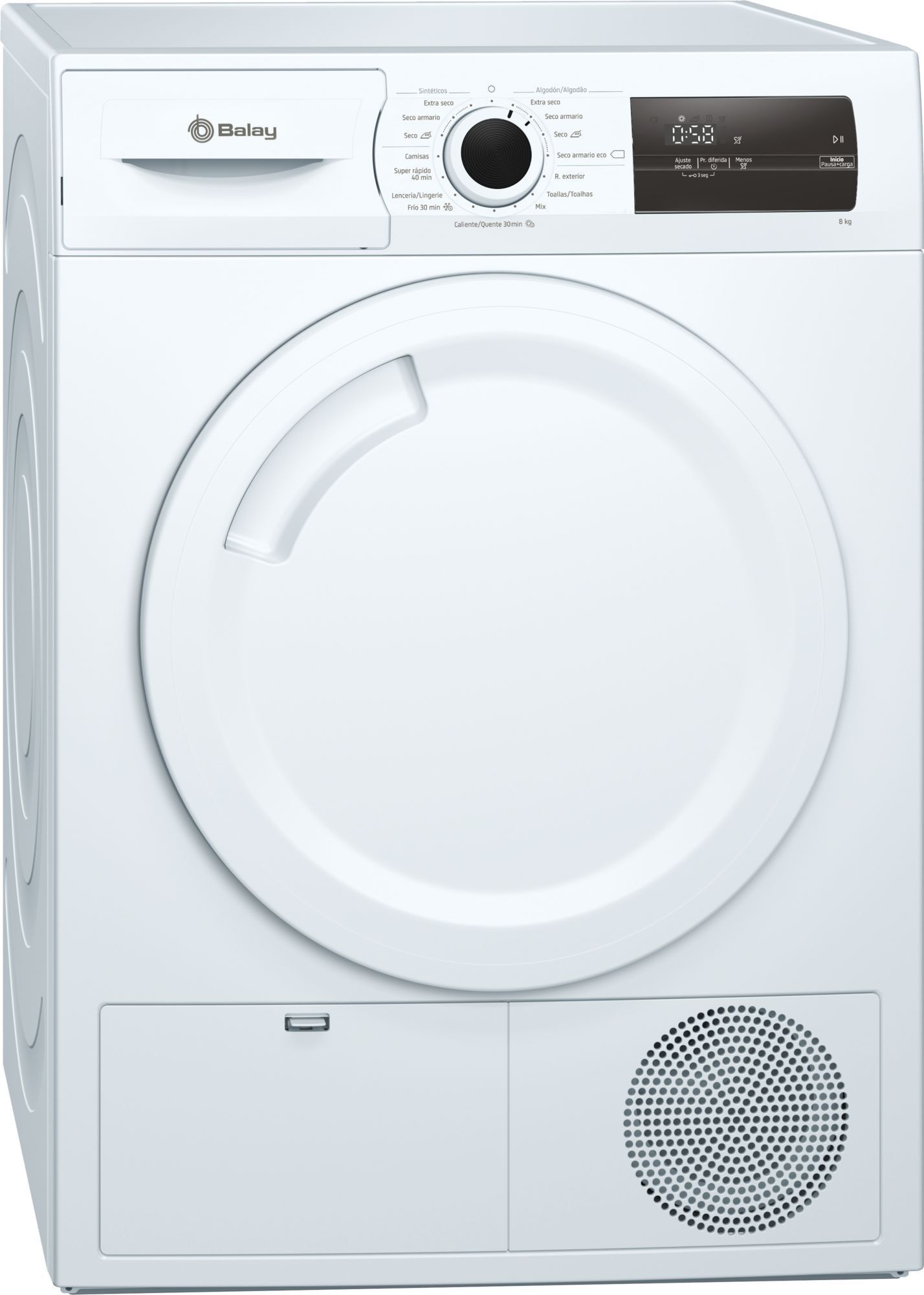 La secadora Balay 3SB287B con bomba de calor de 8 kg, en color blanco, optimiza el consumo energético y ofrece un secado eficaz. Su tecnología avanzada reduce el impacto ambiental mientras cuida la calidad de las prendas con programas adaptados a diferentes tejidos. Ideal para hogares con cargas medianas.