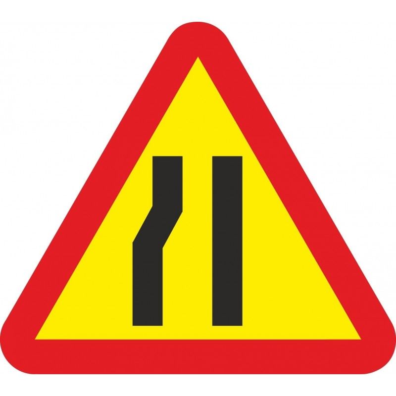 La señal metálica de estrechamiento de calzada por la izquierda es un dispositivo de señalización vial reglamentaria que advierte a los conductores sobre una reducción en el ancho de la vía en el lado izquierdo. Fabricada en lámina galvanizada de alta resistencia, con acabado reflectante de alta intensidad para máxima visibilidad tanto de día como de noche.