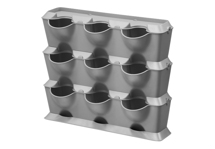 - Sistema modular: Macetas apilables que permiten adaptarse a cualquier espacio.