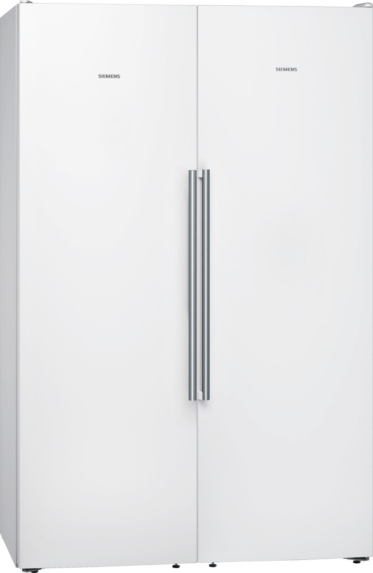 Este set de frigorífico y congelador Siemens incluye el frigorífico GS36NAWEP, el congelador KS36VAWEP y el accesorio KS39ZAW00, todos con la innovadora tecnología noFrost.