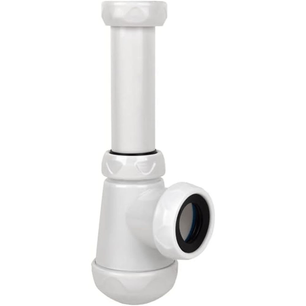 El Sifón de Botella Corto Extensible es una solución ideal para instalaciones de lavabo y bidé donde se requiere un diseño compacto y eficiente. Este sifón tiene un racor de 1 1/4″ y una salida de 40 mm, lo que lo hace adecuado para una conexión rápida y segura en sistemas estándar de fontanería. Además, cuenta con una junta cónica reductora de Ø32 mm, que facilita su ajuste a diferentes tamaños de tubo, lo que aumenta su versatilidad.