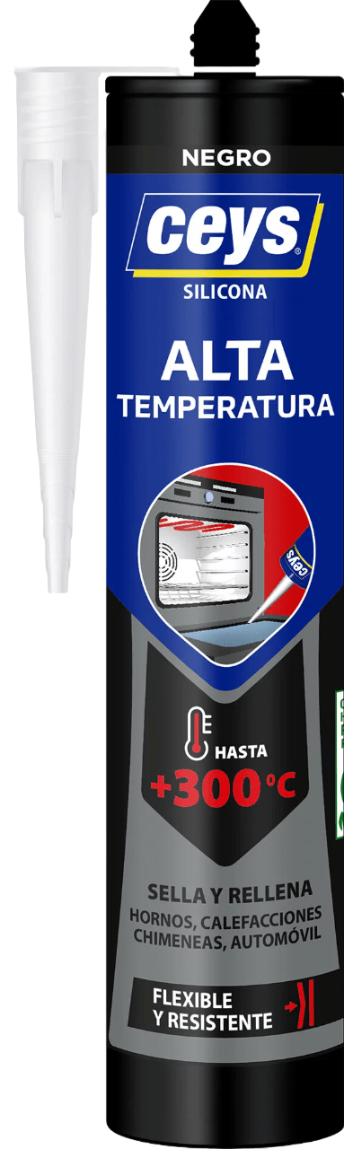 La Silicona Alta Temperatura Negro Ceys está diseñada para sellar y reparar superficies expuestas a temperaturas extremas, hasta 250°C de forma continua. Ideal para aplicaciones en automoción, chimeneas y electrodomésticos.