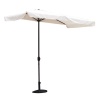 - Cuenta con un mástil de aluminio o acero recubierto, resistente a la oxidación y a las inclemencias del tiempo. Esta estructura proporciona estabilidad y durabilidad, asegurando que la sombrilla se mantenga firme incluso en condiciones de viento moderado.