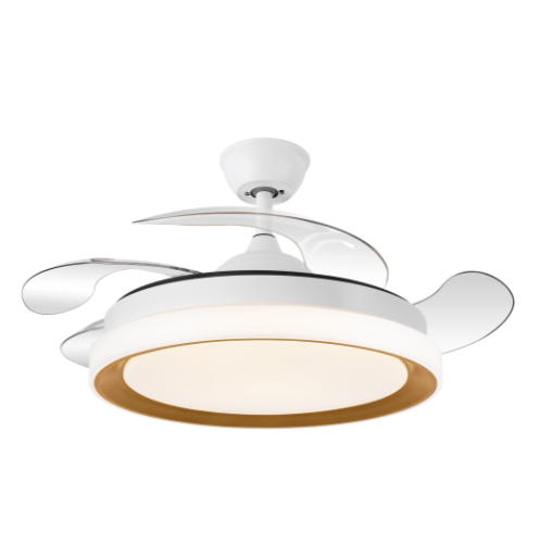 El Ventilador de Techo Aspas Retráctiles Blanco/Oro Venecia es un elegante ventilador que combina funcionalidad y diseño sofisticado. Con aspas retráctiles que se ocultan cuando no se utilizan, este ventilador ofrece un acabado limpio y moderno. Su combinación de blanco y oro venecia le da un toque de lujo a cualquier espacio, ideal para interiores que buscan un estilo contemporáneo y elegante.