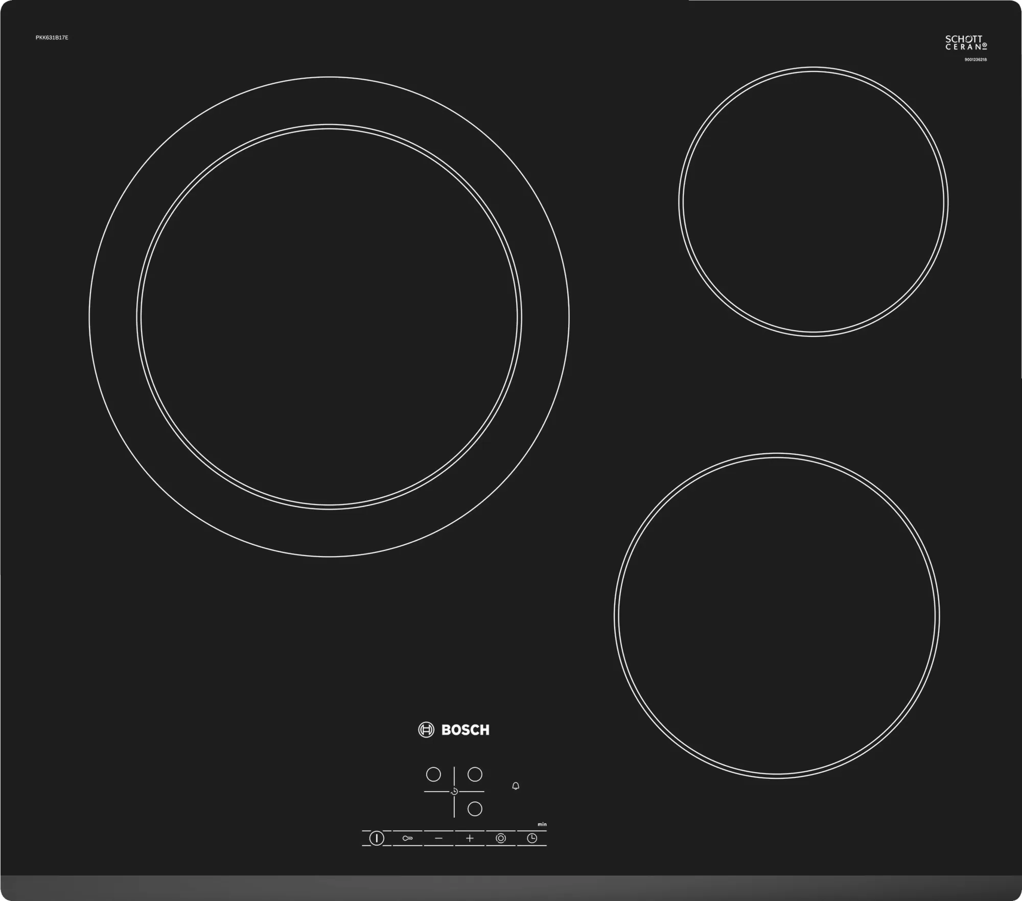 La Bosch PKK631B18E es una placa vitrocerámica de 60 cm con un diseño moderno en color negro y controles táctiles intuitivos. Equipada con tres zonas de cocción HighSpeed, permite un calentamiento rápido y eficiente para optimizar el tiempo en la cocina. Su función de programación del tiempo de cocción y su indicador de calor residual garantizan seguridad y comodidad.
